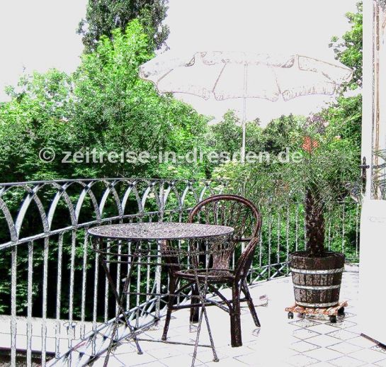 Dieses Bild zeigt den Balkon mit Blick zur Südwest Seite des Garten vor einigen Jahren